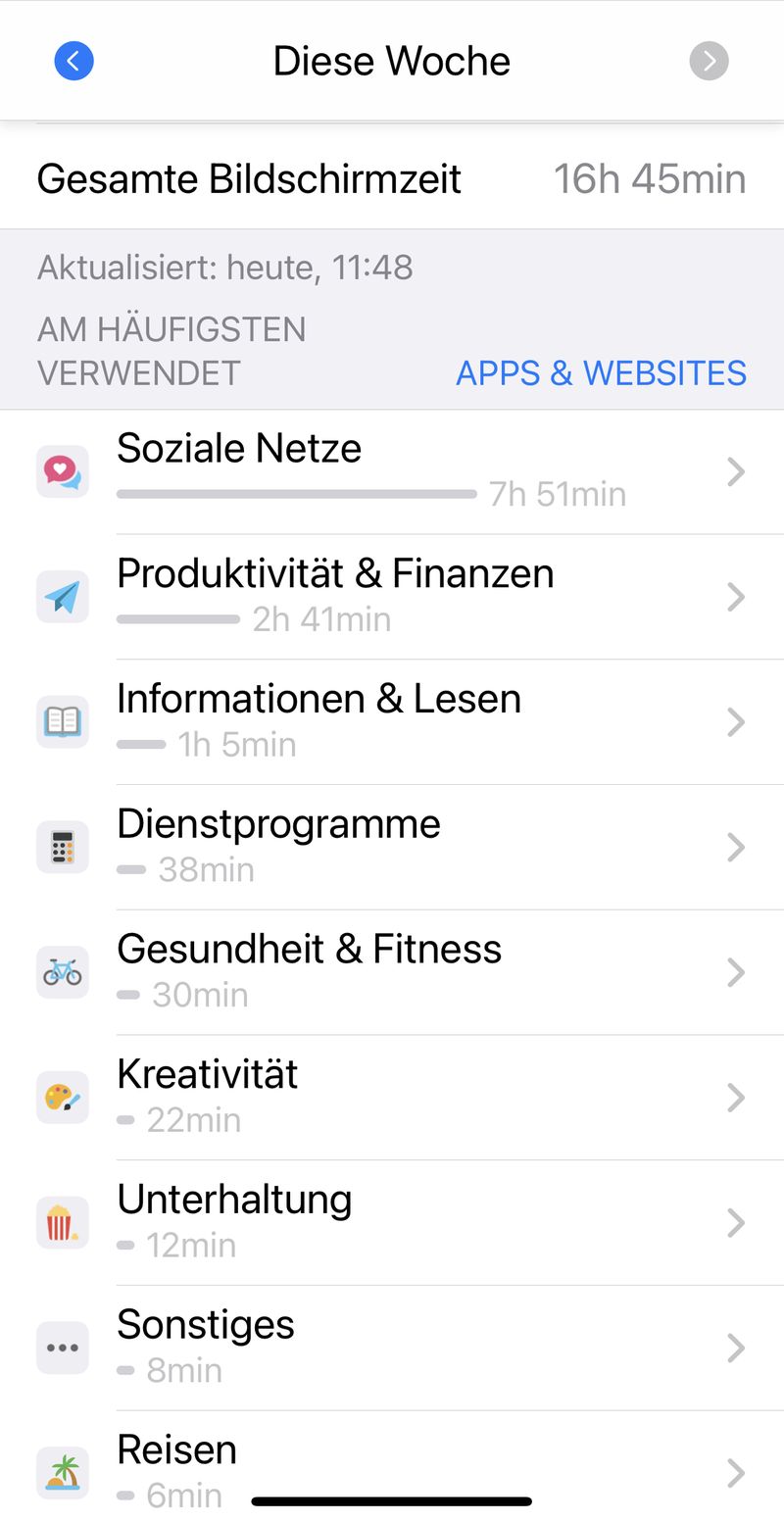 | Bildschirmzeit (Tagesdurchschnitt) |