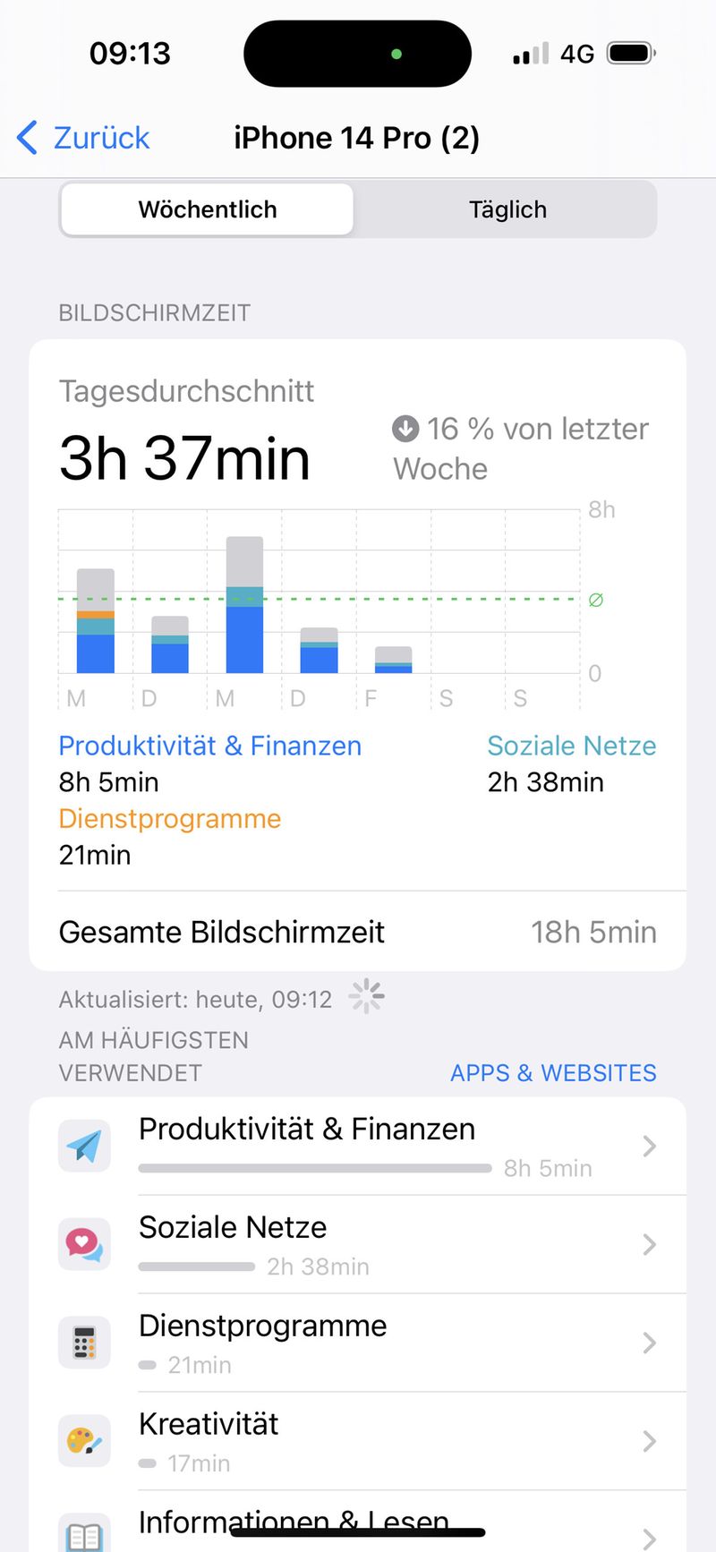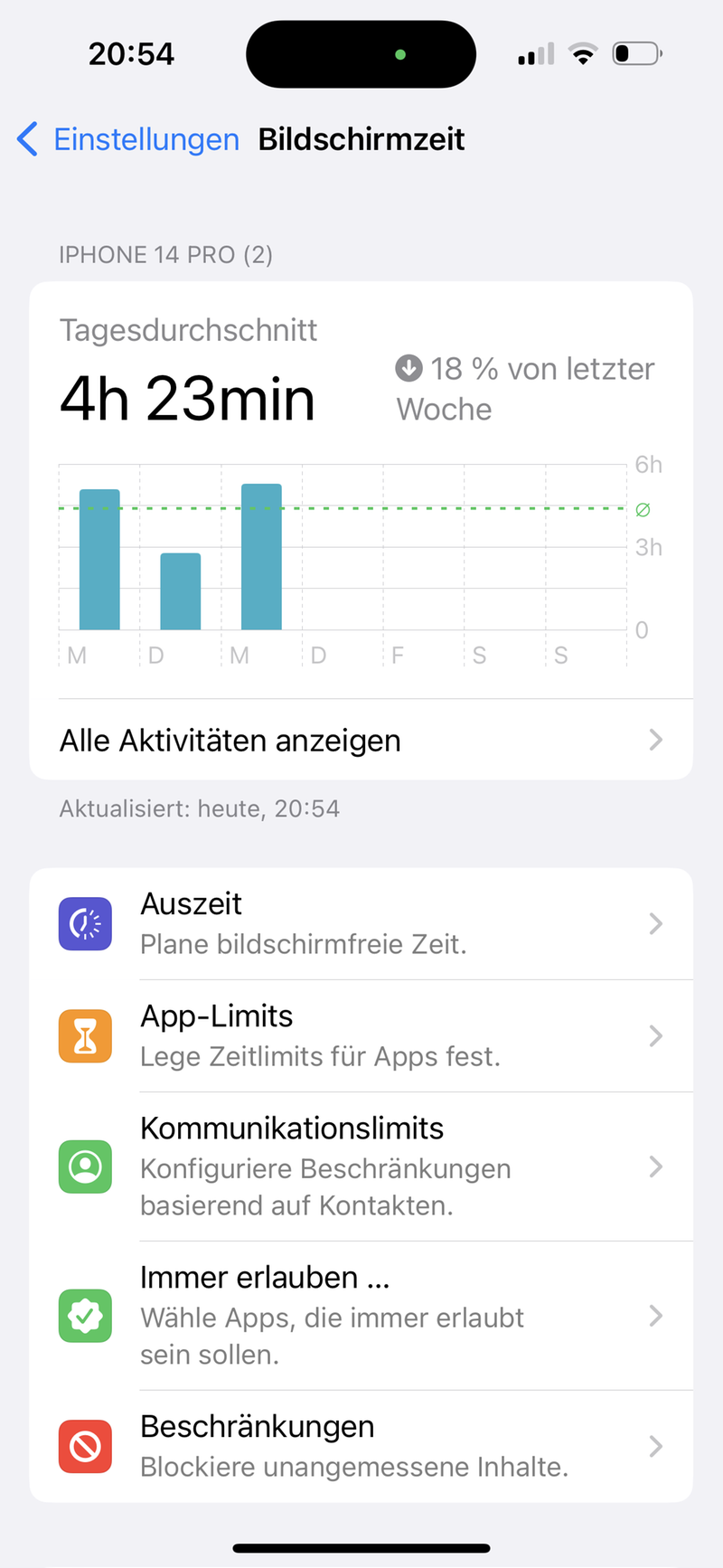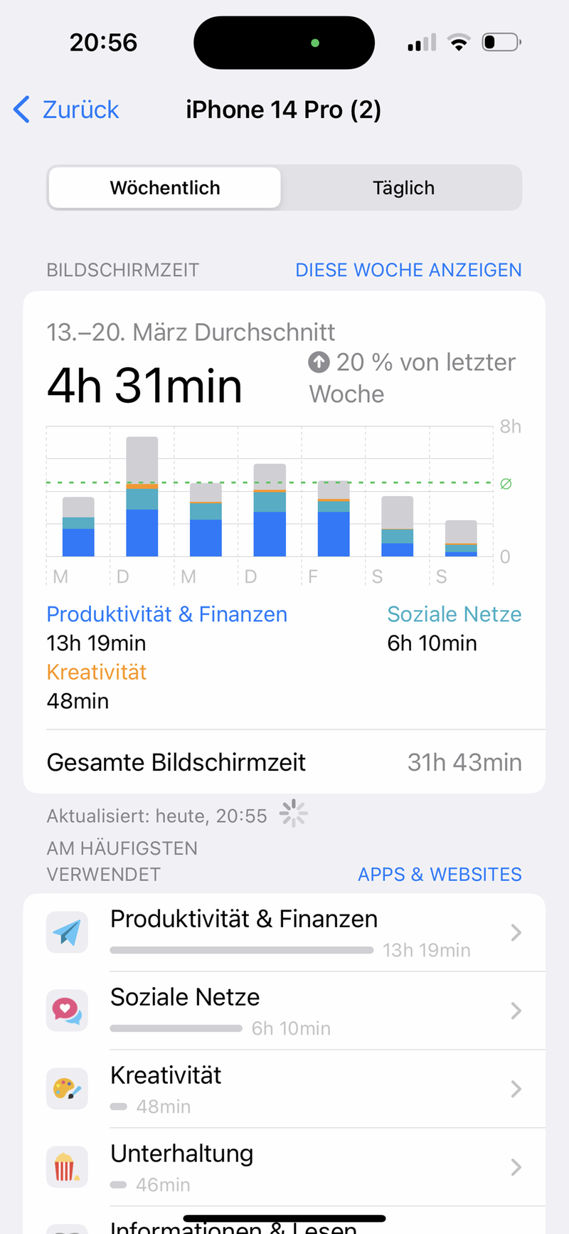 | Bildschirmzeit (Tagesdurchschnitt) |