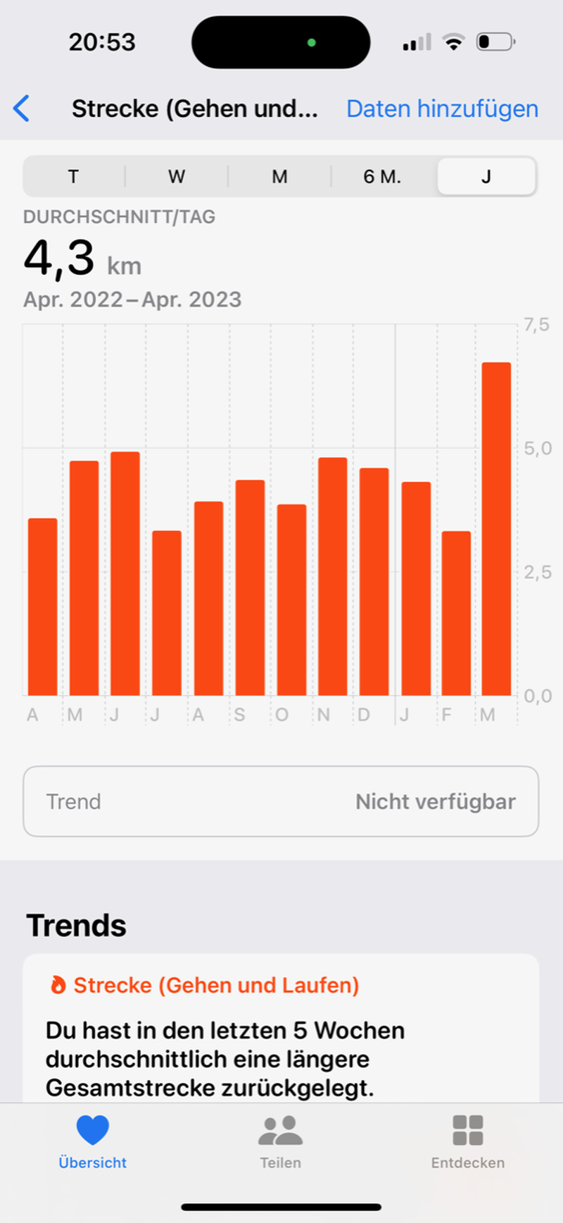 Mein Smartphone hilft mir auch beim in Bewegung bleiben! Meine Challenge: Jahresdurchschnitt 4km / Tag |